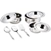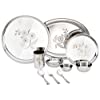Package Contents:- 6 Dinner Plates, 6 Quarter Plates, 6 Vatis, 6 Chatni Vatis, 6 Halwa Plates, 6 Glasses, 6 Small Spoons, 6 Big Spoons, 6 Forks, 1 Serving Bowl with Lid (Small), 1 Serving Bowl with Lid (Medium), 1 Serving Bowl (Big), 3 Serving Spoons, 1 Serving Tray; Quantity: 61 Pieces; Total Weight: 2418 gm (2.418 kg)