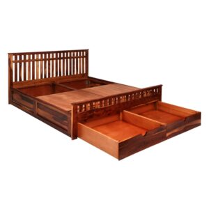 Made Up Of Kiln Dried Chemically Treated Sheesham Solid Wood. Bed Head Board Is 40 mm Thick. Side Panels Are 27mm Thick . Headboard Has Very Elegant Design . Foot Baord Is 27 mm Thck. Height Of The Side Rails From The Floor Is 400 mm.
