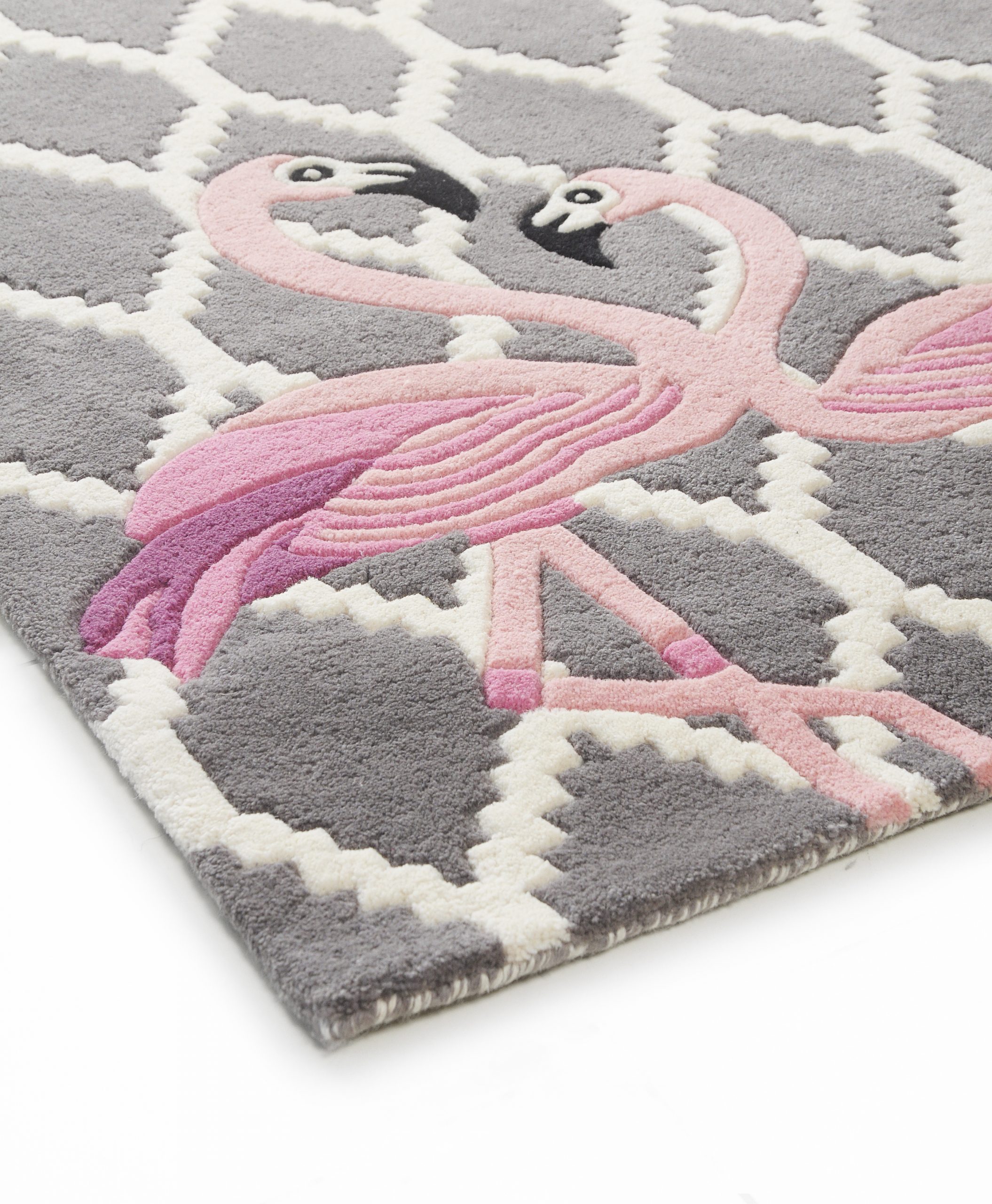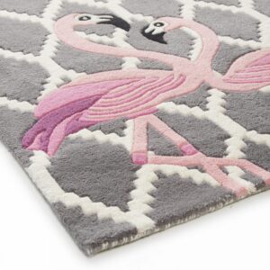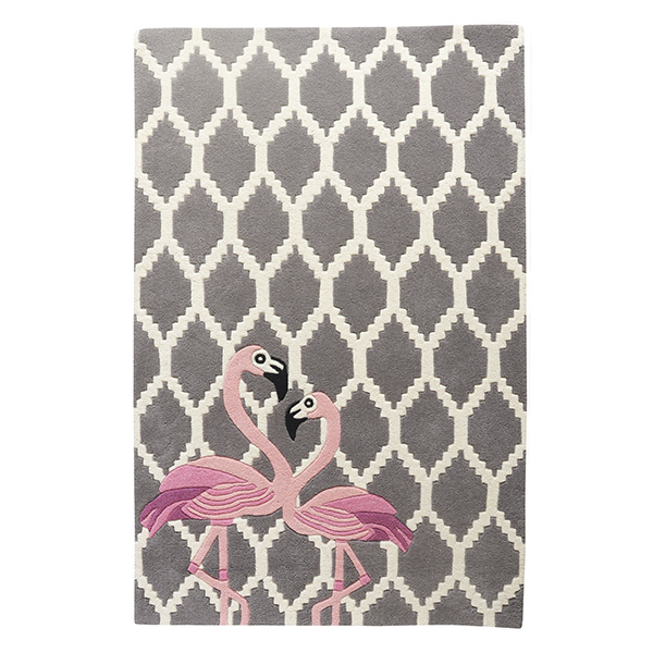 Beautiful grey flamingos woven on a grey trellis design certainly create a stylish and a cozy feel for your childs room.
