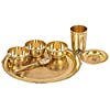 🍽️ Indian Art Villa Pure Brass 7 Pieces Dinner Set/Thali Set of 1 Plate, 1 Glass, 1 Spoon, 1 Small Plate & 3 Bowls, Color- Gold