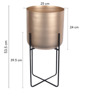 Material: IronnTechnique: ElectroplatingnDimensions: Stand- 39.5cm; Planter- Dia 25cm, H- 24cmnTotal Height- 53.5cm