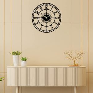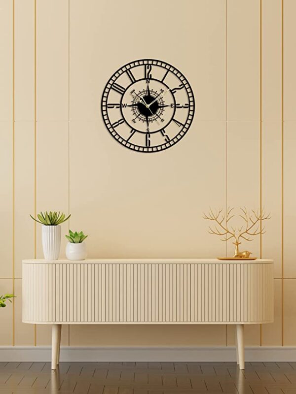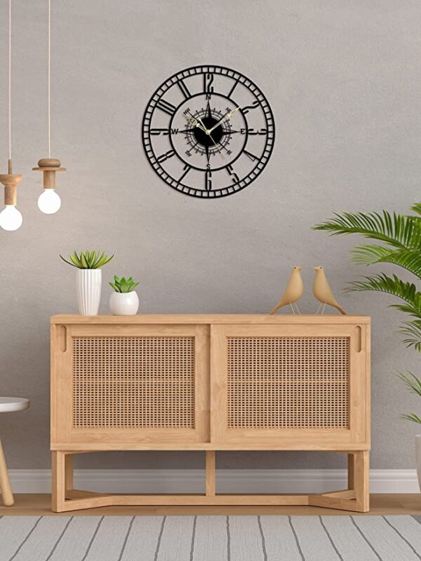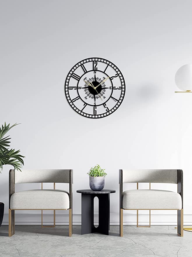 About this itemnMatterial : MS(Mild Steel) | Size : 24 inch | Color : Matte BlacknWarranty – One Year for Manufacturing DefectsnEasy to Hang : This wall clock is ready to hang without wasting any time on assembly. Put 1 AA batteries in and the clock is ready to go on the wall and no assistance needed.n1 AA battery is included with PackagenCare instruction : clean with dry clothes or feather duster