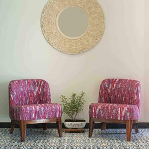 The structure of this sofa chair, also known as easy chair, rest chair, wing chair is made in teak wood moreover the legs are beautifully shaped with Premium Teak Wood (Sagwan)