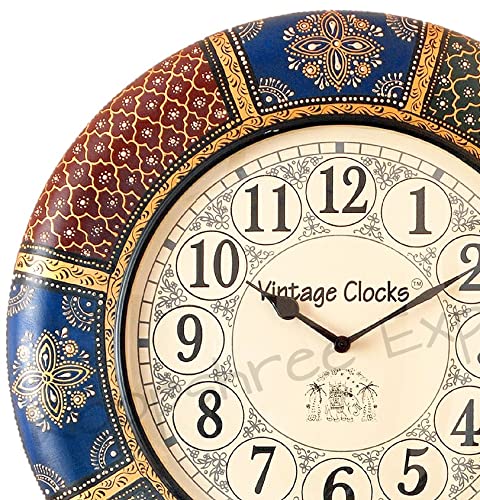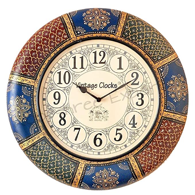 About this itemnHand-Crafted Clock with Hand-Painting Varli Art Work , Design with Royal Touch – Comes with Batteries and Screws for Wall HangingnClock Size : 16 x 16 Inches ( 40 x 40 CMS) , Dial Size : 10 Inches (25 CMS)nPerfect for : Living Room , Bedroom , Hall / Guest Room , Kitchen , Office , also a unique and useful gift purpose productnImages and Design created under Make in India Direction by Rajasthani Artisans. When you from you are supporting Make in India Products crafted from Natural Materials by Indian Artisans and helping them with a sustainable livelihoodnComes with Superb Packing and Hassle One Year Warranty Assurance